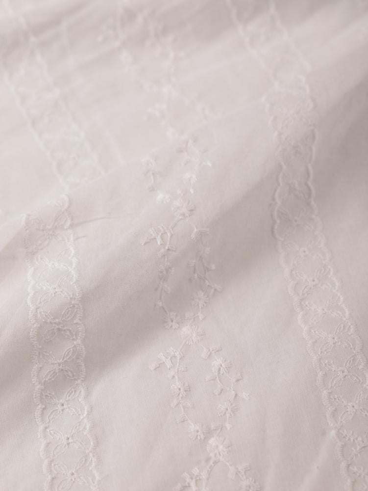 يتميز القماش بتصميم **مطرز بدقة** مع تفاصيل مخرمة أنيقة ، مما يضفي لمسة من الفخامة والجمال على أي قطعة ملابس يستخدم منه.