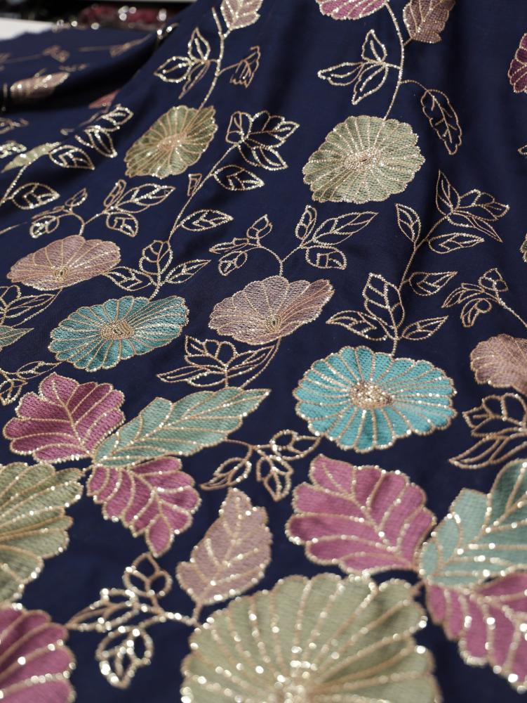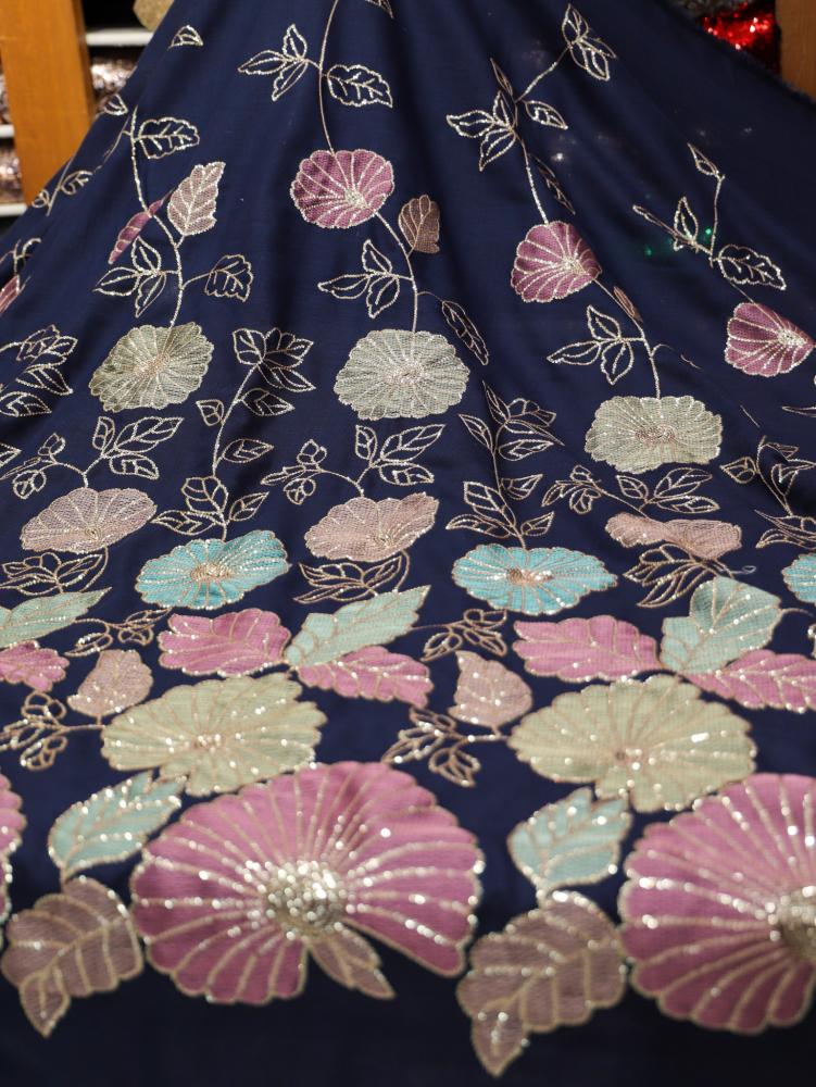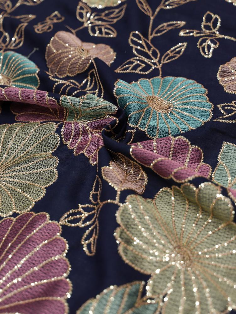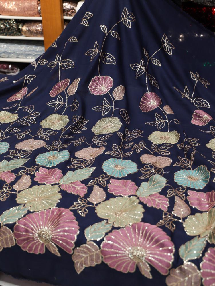 لنن مطرز مشغول على ترتر ( كحلي