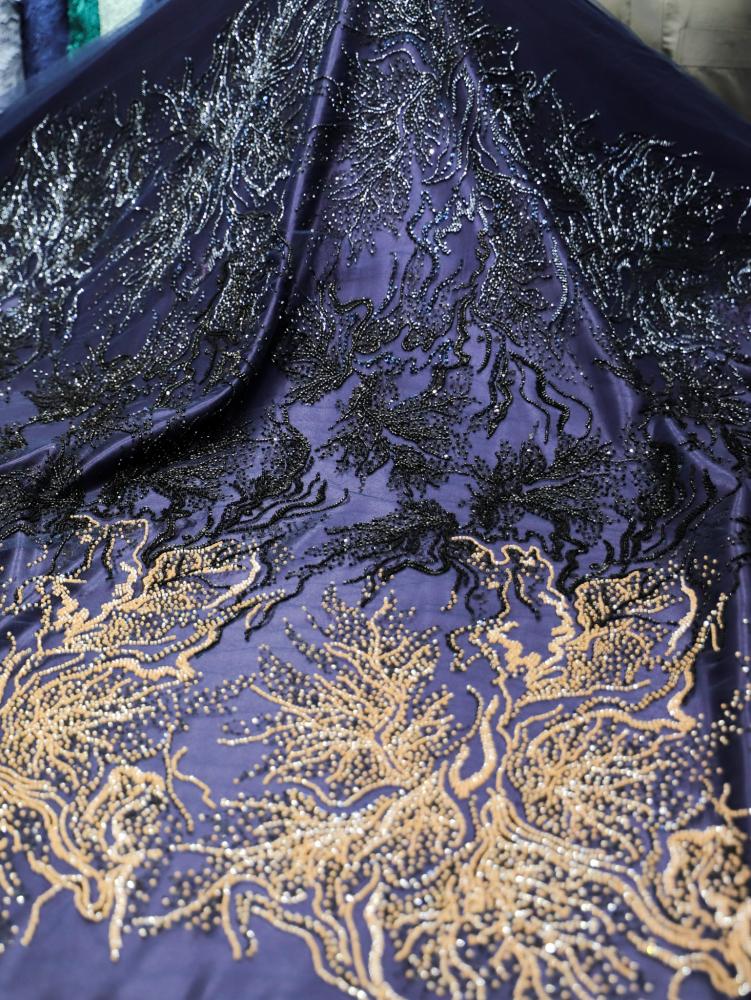 هذه الأقمشة ليست مجرد قطع من القماش، بل هي **لوحات فنية** تخطف الأنظار بلمساتها البراقة وتفاصيلها الدقيقة. مصنوعة من أجود أنواع الأقمشة التي تتناغم معها أروع أشكال الخرز والترتر ، لتخلق مظهراً ساحراً يناسب أهم المناسبات. كل قطعة مُصممة بعناية لتضفي لمسة ملكية وجاذبية لا تُقاوم، مما يجعلها الاختيار الأمثل لفساتين السهرة والمناسبات السعيدة.