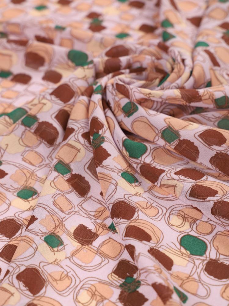 قماش شيفون خفيف وناعم بمطبوع مشجر جذاب، متوفر بعرضين ليتناسب مع مختلف التصاميم. يتميز بلمسة سيلكية وانسيابية رائعة، مما يجعله خيارًا مثاليًا للفساتين والموديلات الأنيقة.