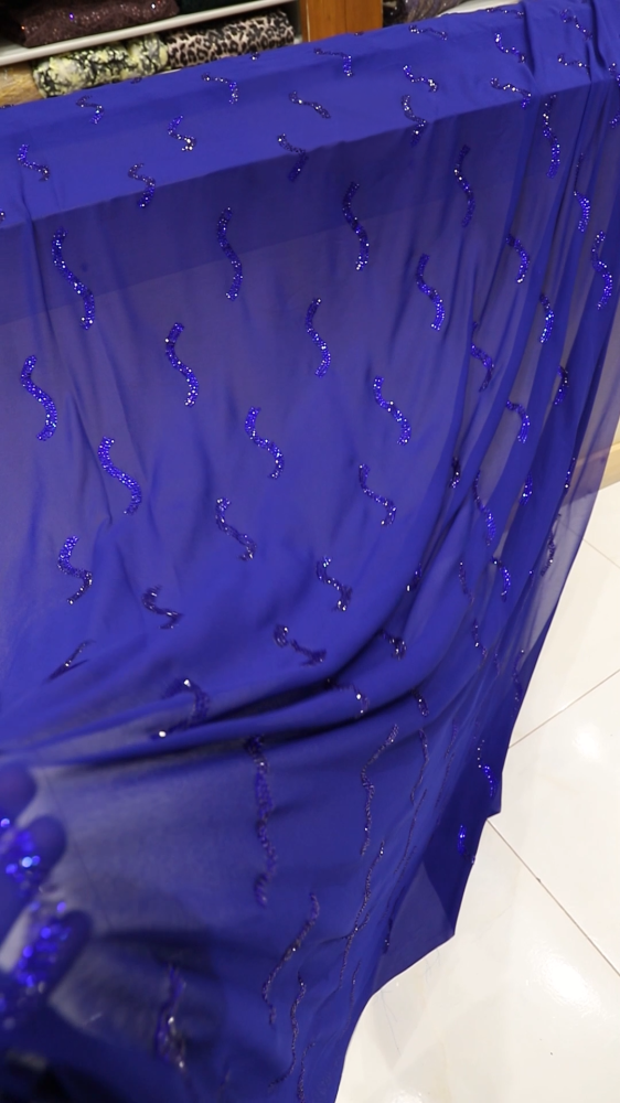 شيفون مشغول بالكرستال ( لون ازرق غامق )