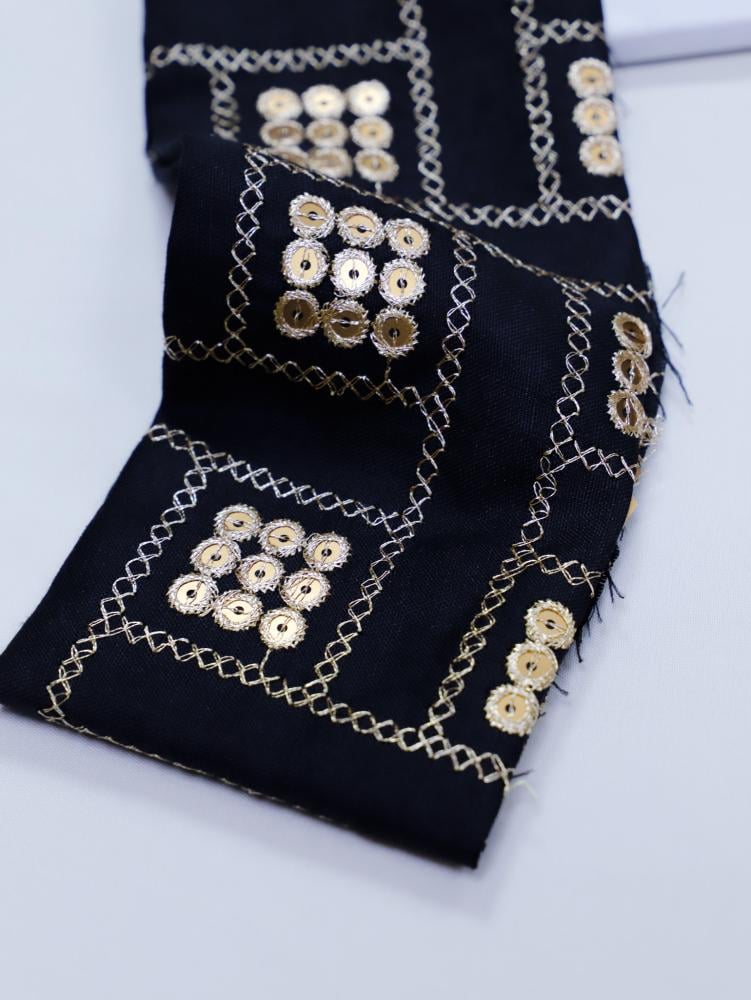 - يتميز القماش بأنه ناعم، طايح، خفيف، مطرز بتطريز فخم.